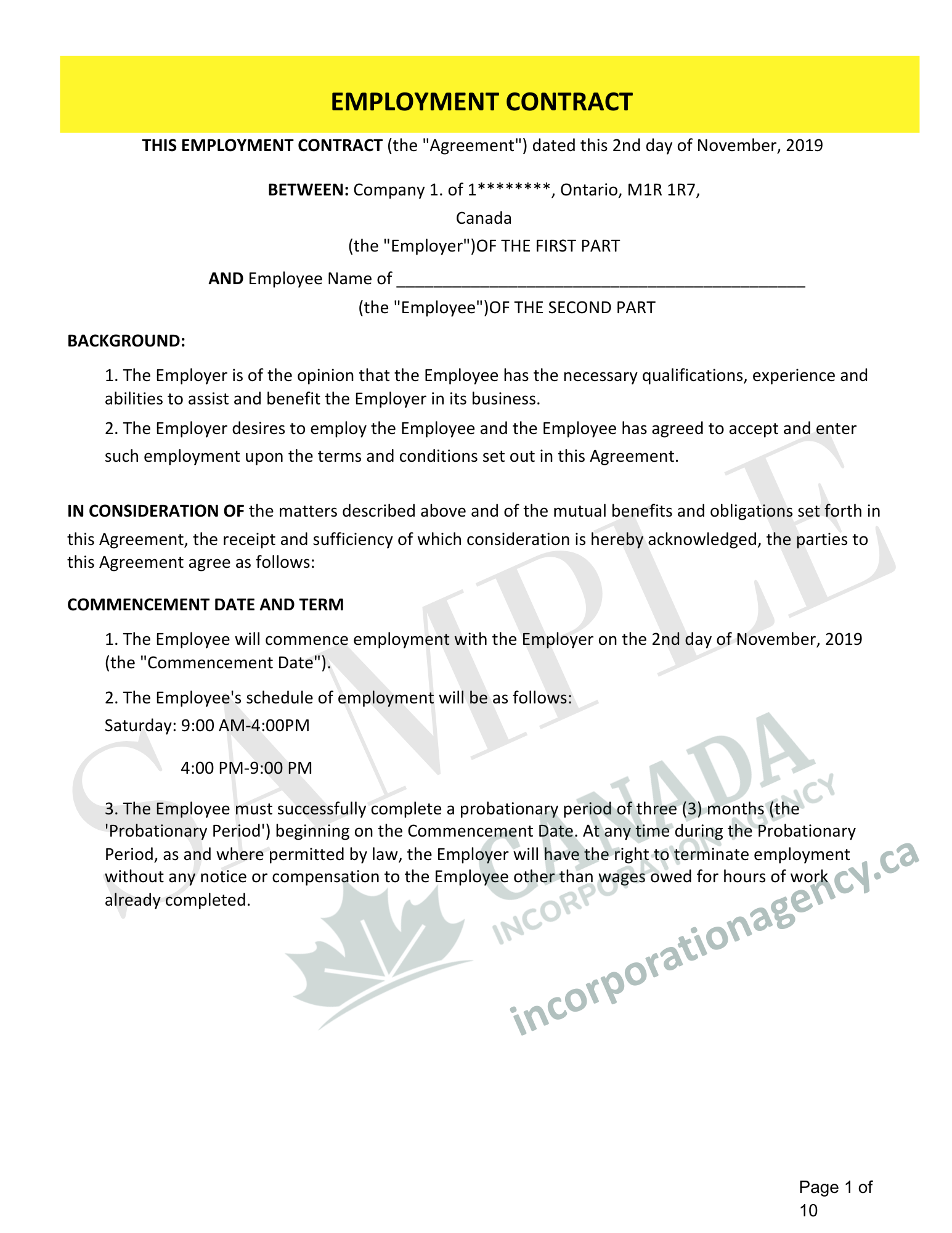 - Employment contracts drafted to match local laws in every Canadian province and territory.