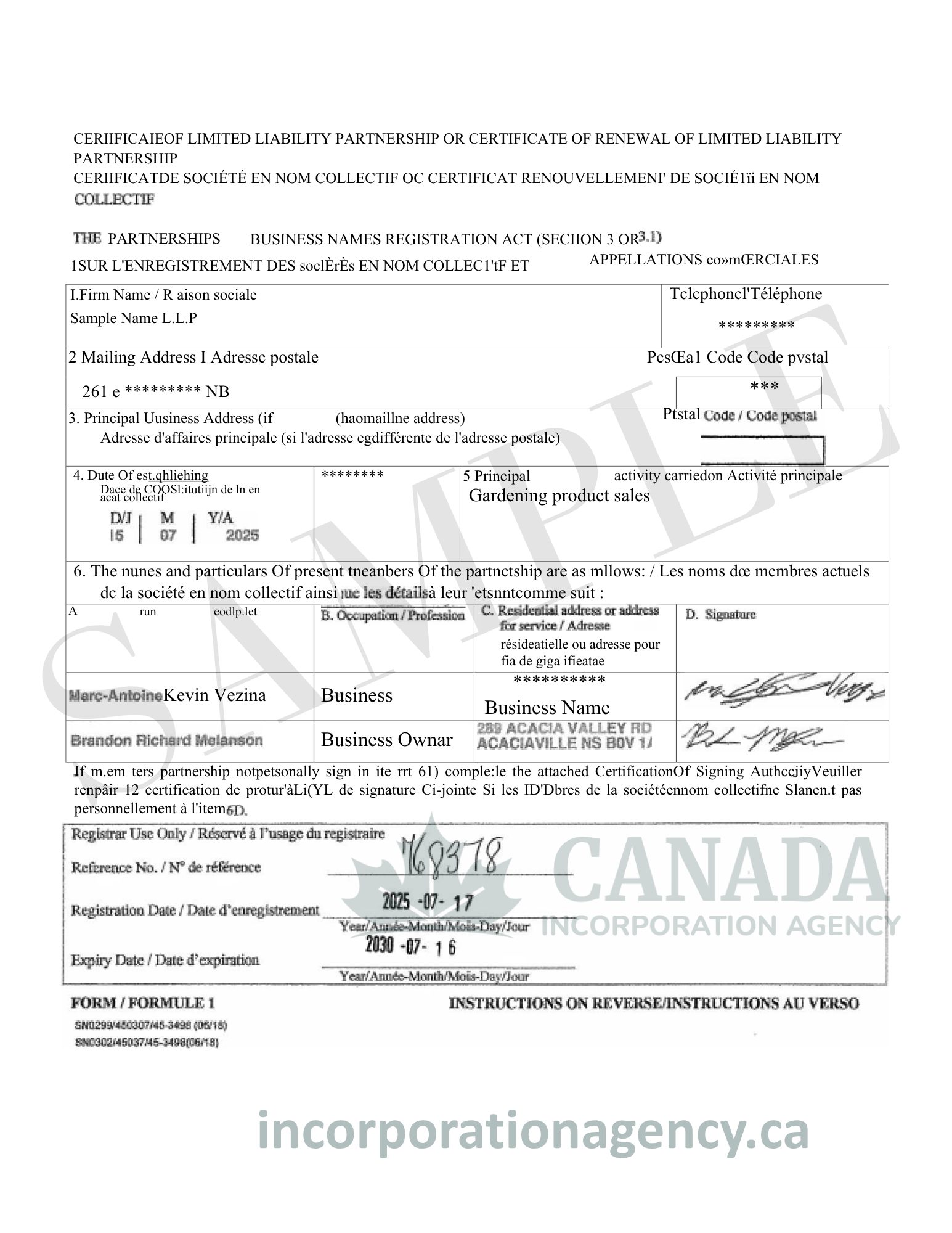 NEW BRUNSWICK GENERAL PARTNERSHIP REGISTRATION