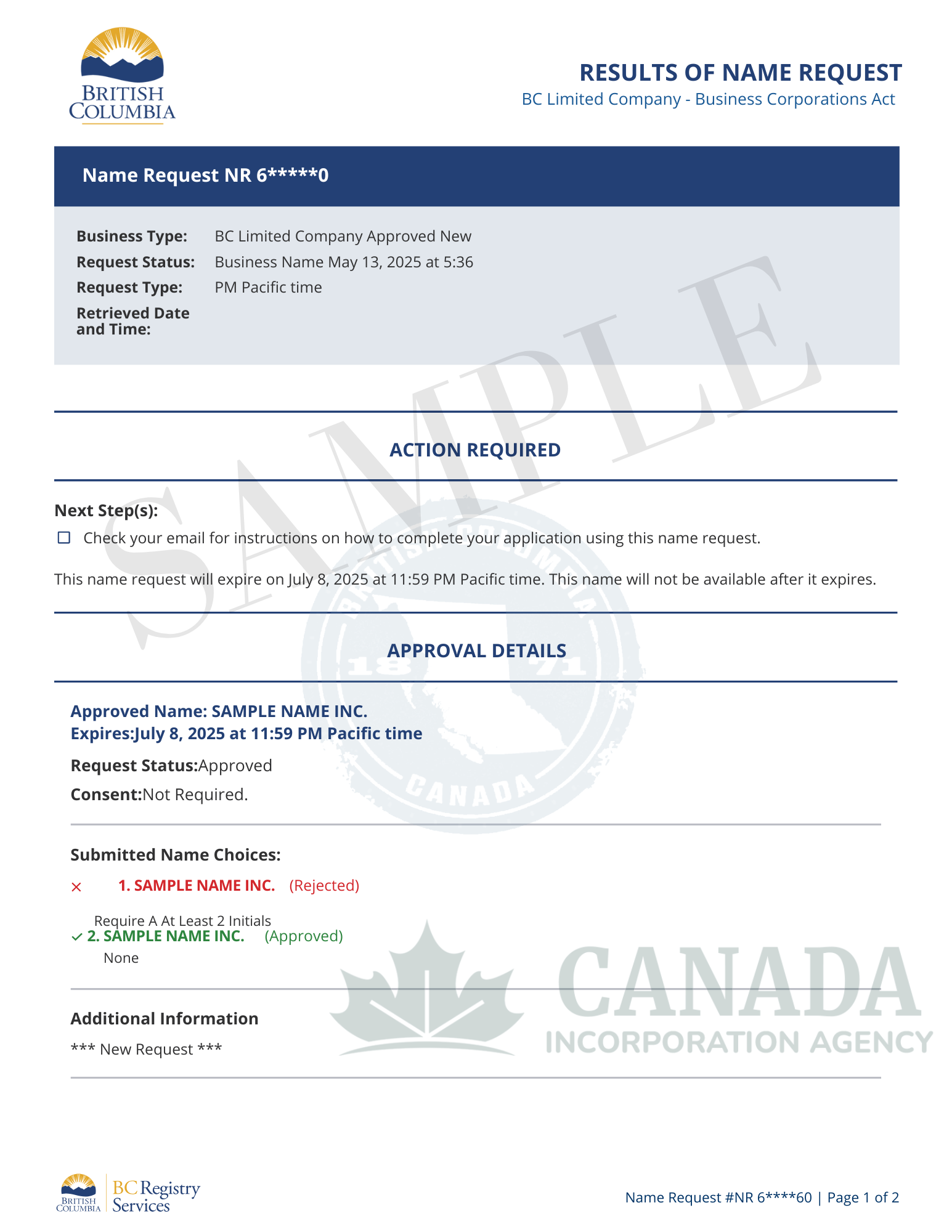 No, British Columbia employs its own name reservation system rather than the federal NUANS system. If you’re forming a named company, we’ll assist you with reserving your business name using BC Registry’s Name Request system.