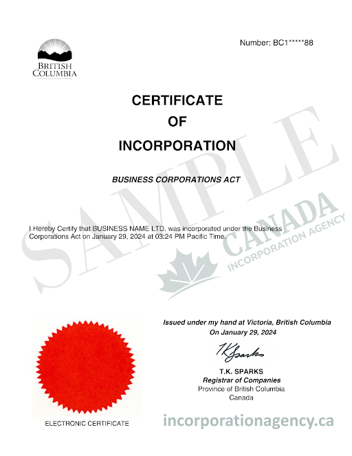 After incorporation, you will get your Certificate of Incorporation and Articles of Incorporation. You may then create a business bank account, register for taxes (such as GST/PST), and start operating lawfully.
