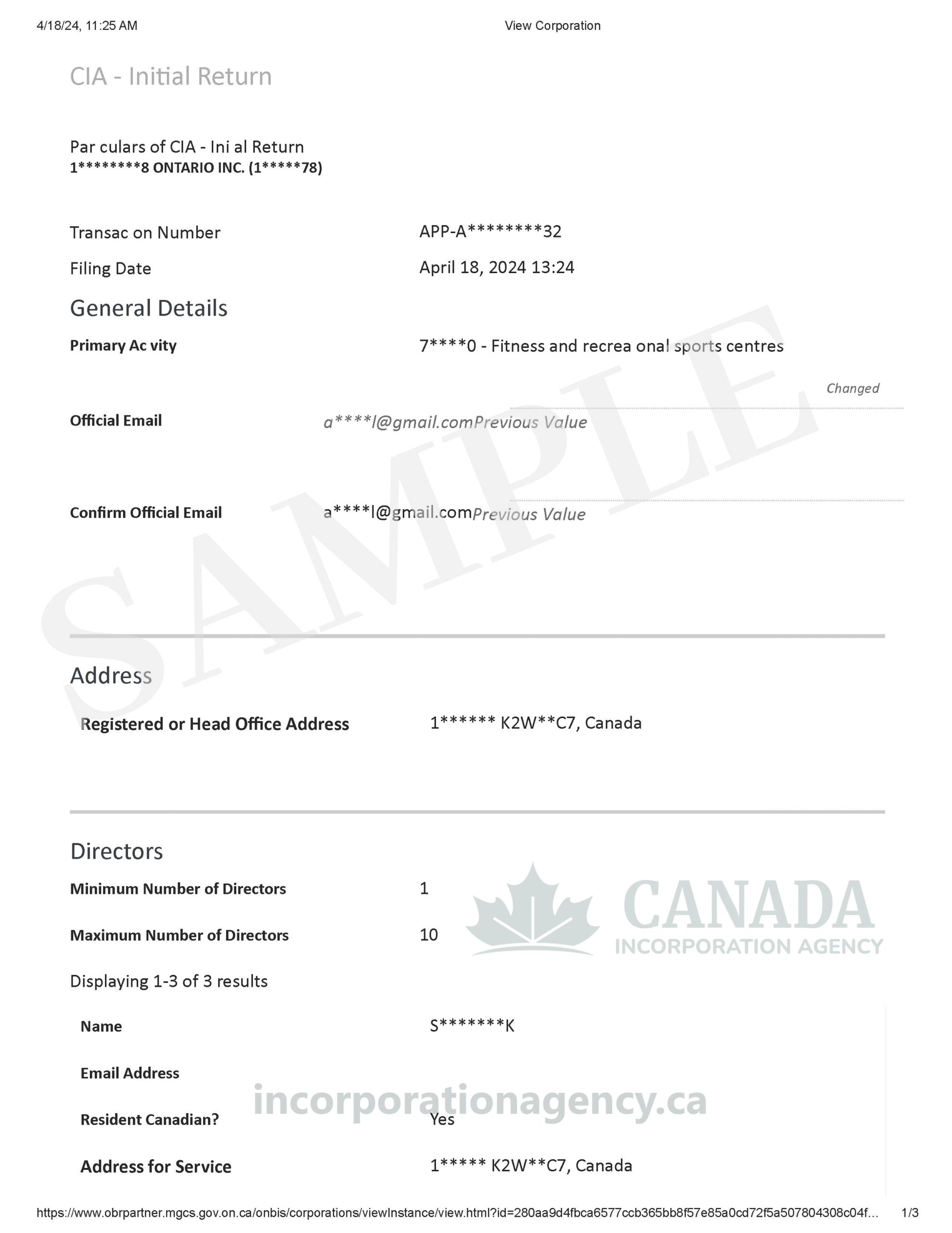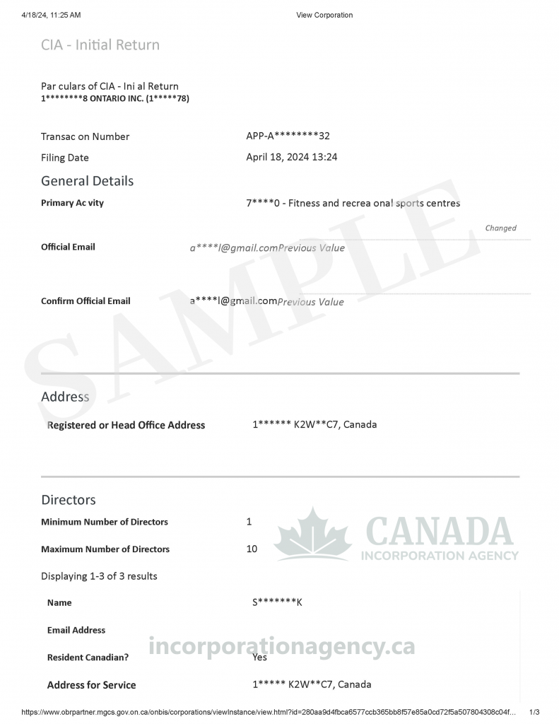 Filing your Initial Return is a mandatory step after incorporating your business in Ontario. It officially notifies the government about your corporation’s directors, registered office, officer’s name and designation, and other essential details.