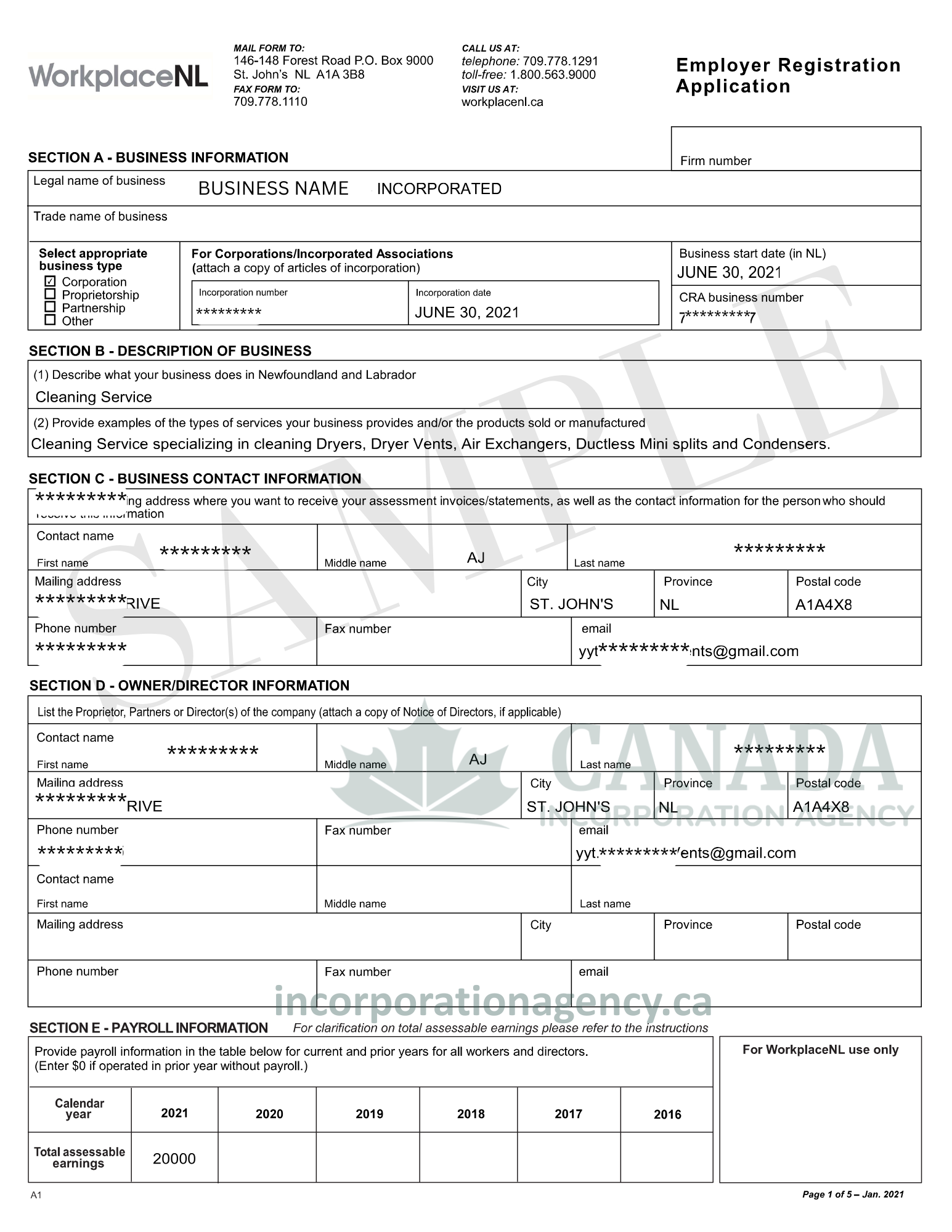 NEWFOUNDLAND WORKPLACENL REGISTRATION