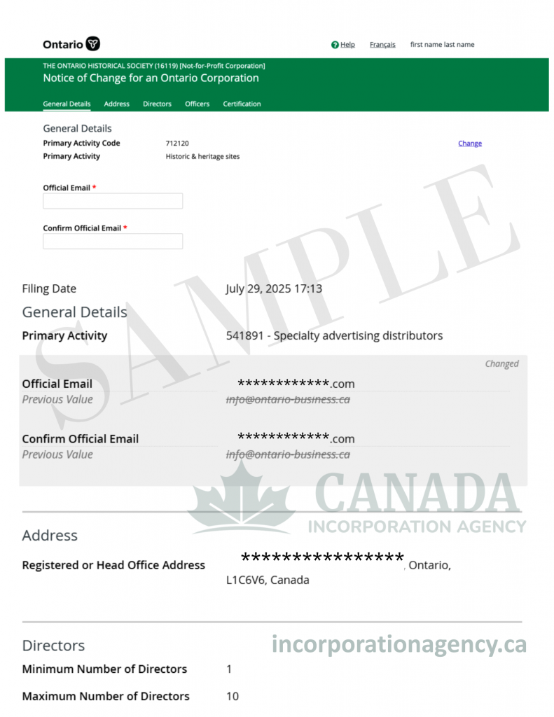 It’s the primary email address registered with the Ontario Business Registry, used by the government to send legal notices, filing reminders, and important updates.