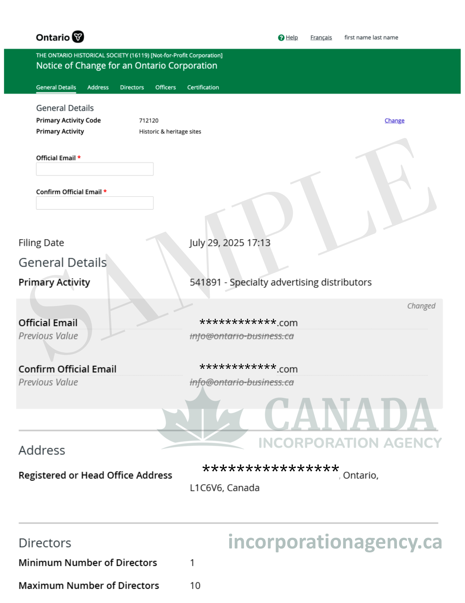 | What is Official Email? | The main legal email for your corporation on file with the registry |