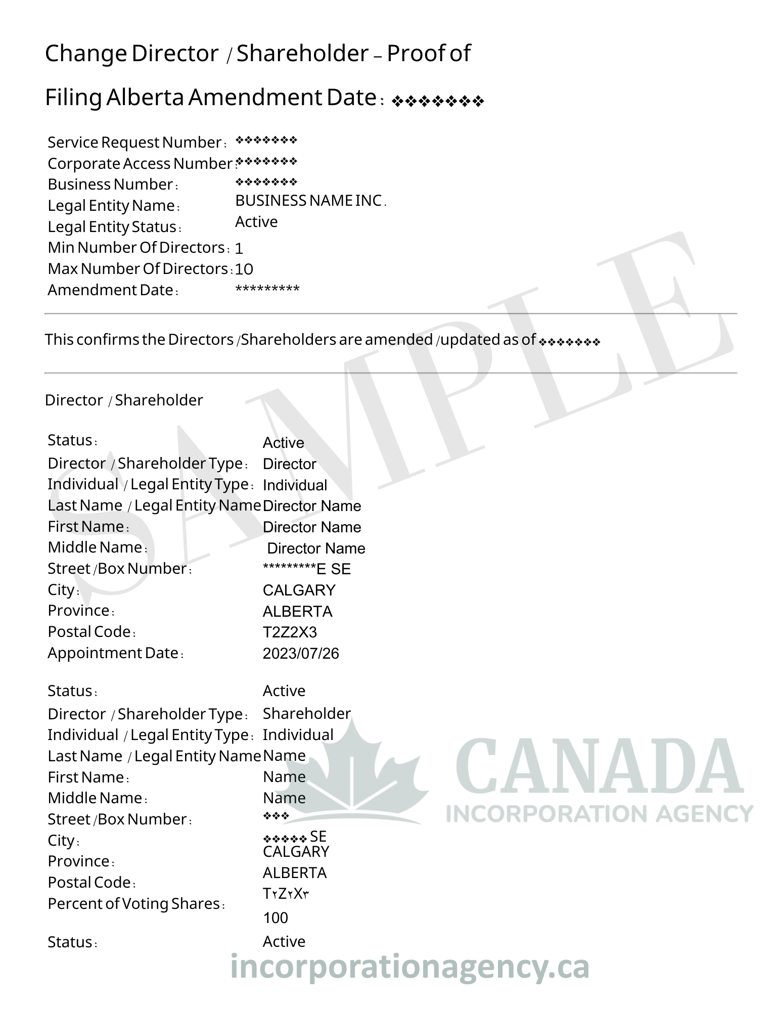 | Deadline of change | Within 15 days (Ontario), promptly (federal) |