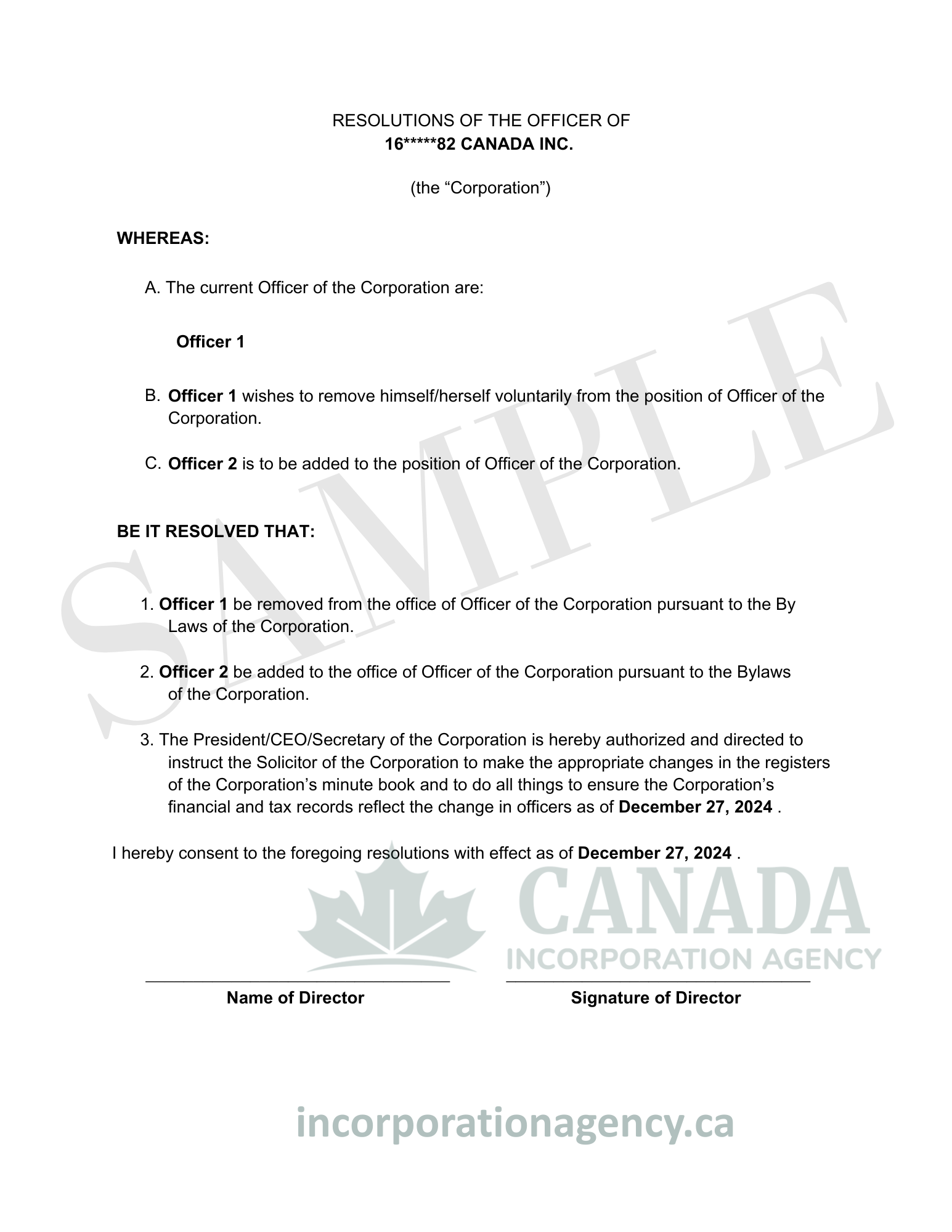 To officially change the email address of a corporation in Canada, you will need to provide the following information: