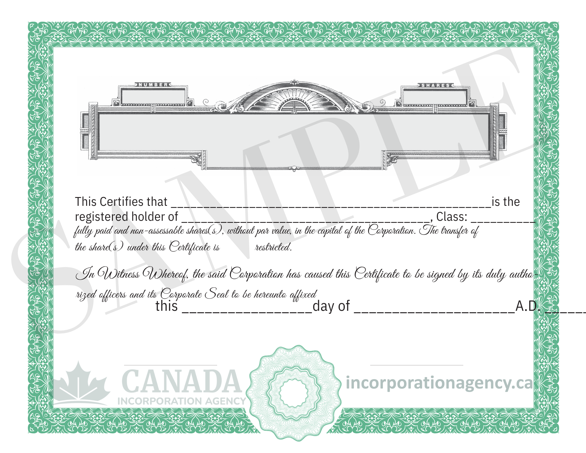 Share Certificates for Canadian Corporations