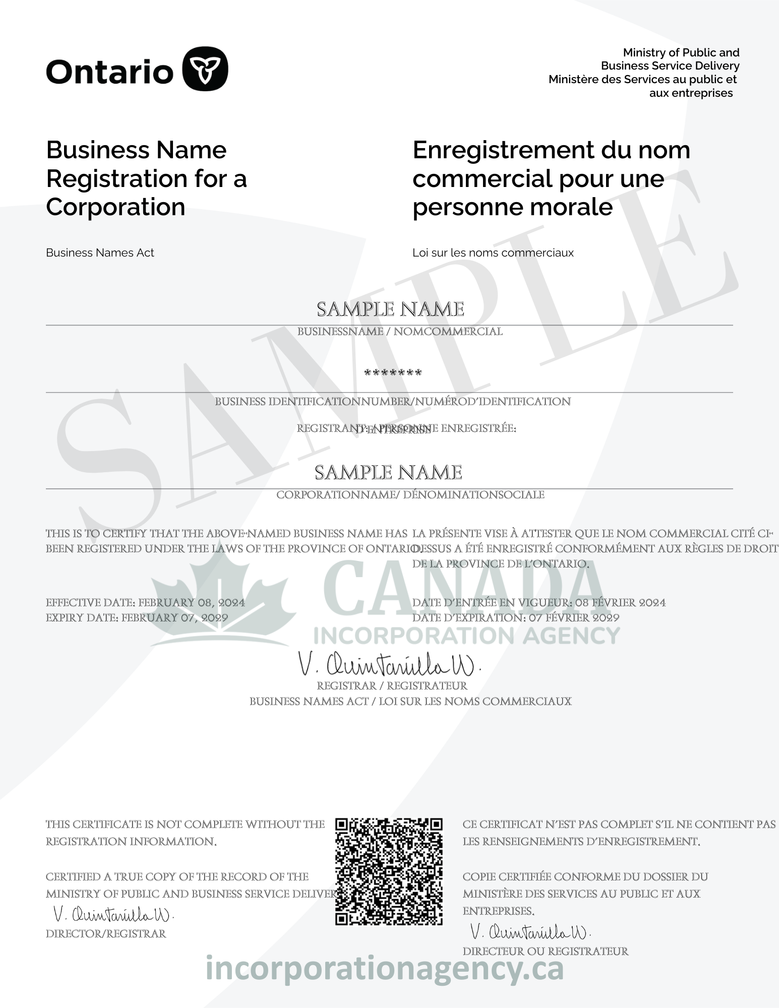 - Must be formally registered with the Ontario government