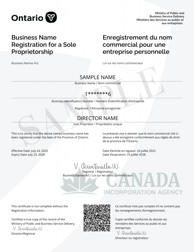 Ontario Sole Proprietorship